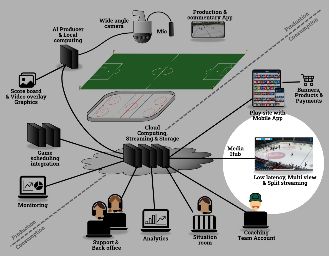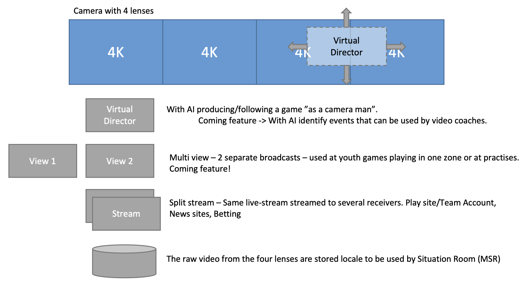 Possibility to produce multiple streams from the same location/arena e.g. view a match from several angles or even view several different matches that are being played at the same time and place.
