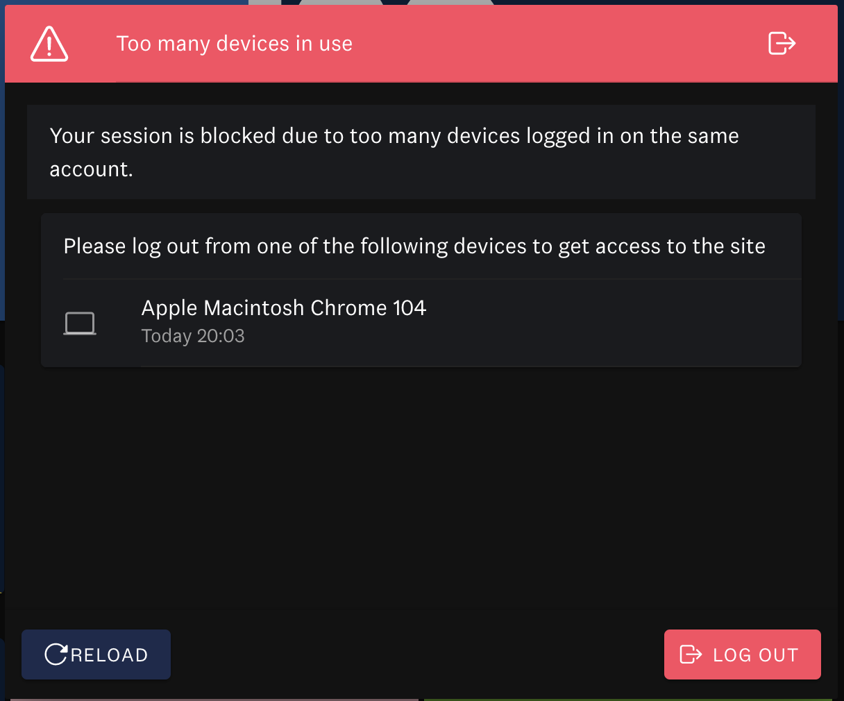 If a user exceeds the number of allowed sessions, a session blocker will appear.