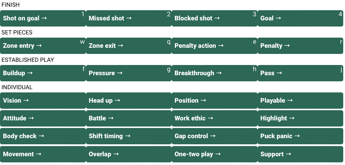 With location tags you can not only tag where shots are taken. You can add where on the net the shot goes, where the rebound goes and where face offs are taken (Ice hockeyl)