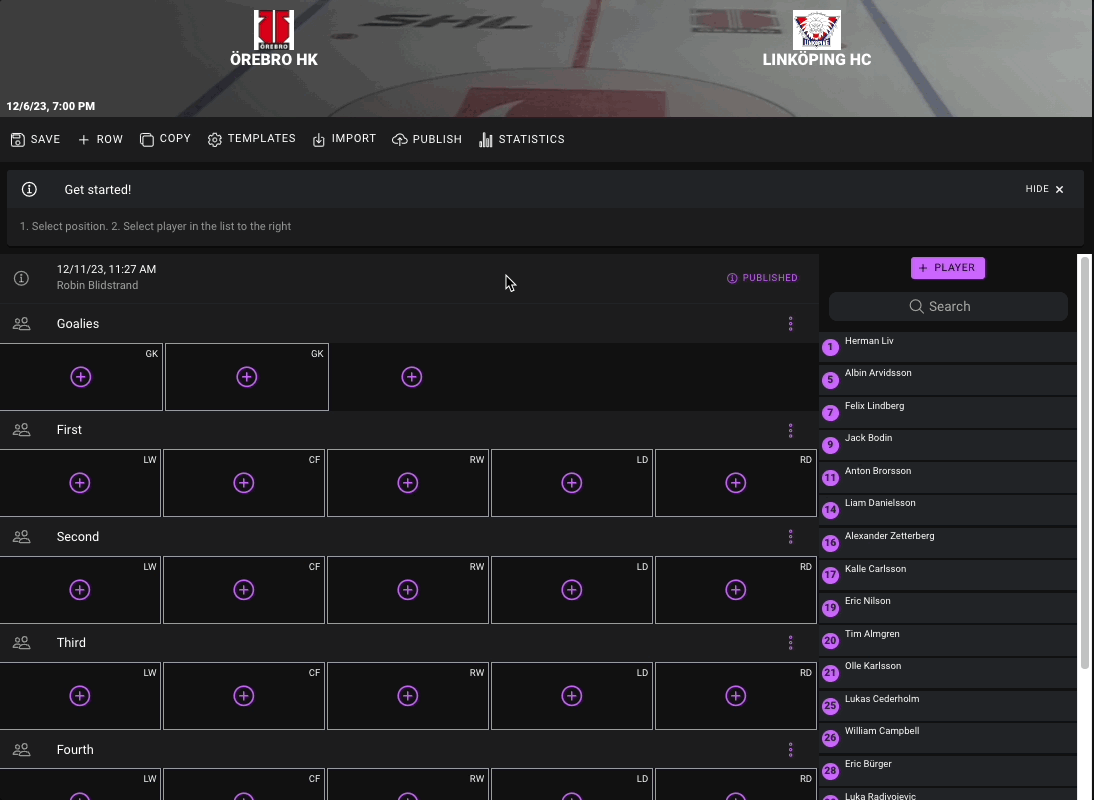 1. On the line up page, click on STATISTICS. You can choose the amount of games the statistics will be based of. Now, in the list of members to the right you can see where they have played in the amount of games you have choosed.